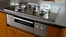 人気のビルトインコンロや、レンジフード連動機能搭載商品をご用意