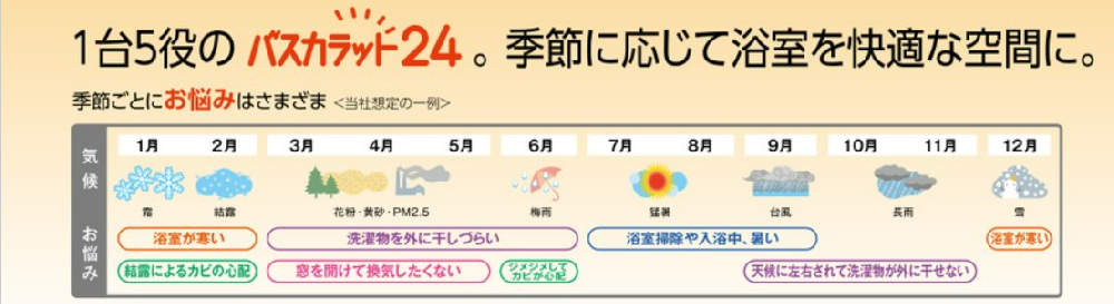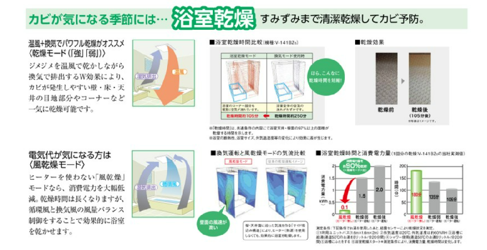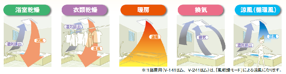 - 衣類乾燥・浴室乾燥・暖房・涼風・換気の1台5役
