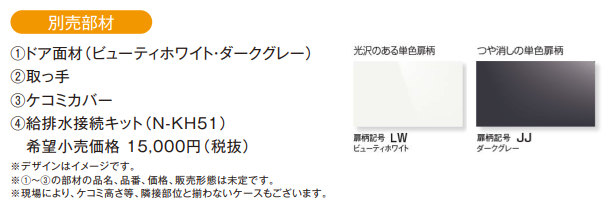 キッチンの仕様によって、商品設置が前提となっていないものも多くございます。その場合には、電源工事・給排水工事が別途必要になります。