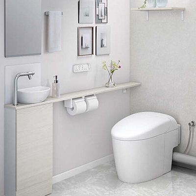【特徴1】収納と手洗器がパッケージングされた「システムトイレ」