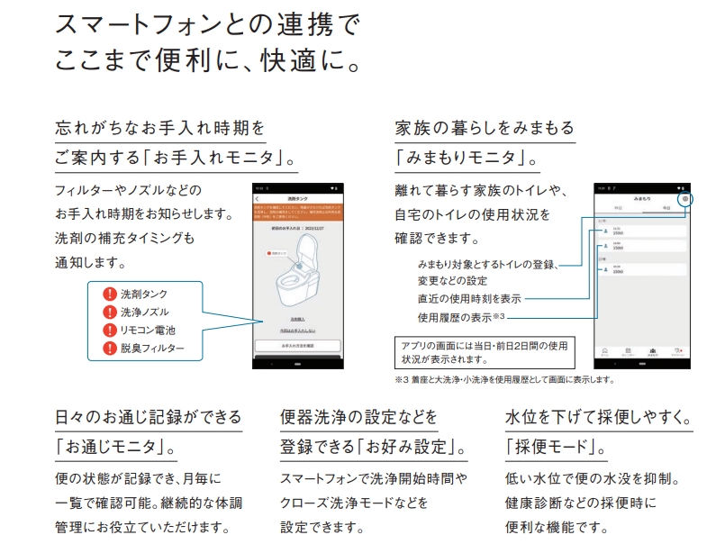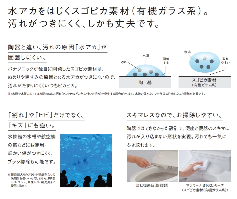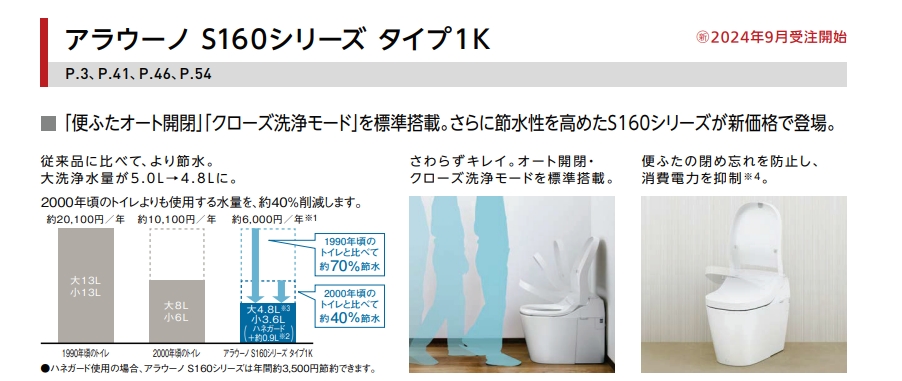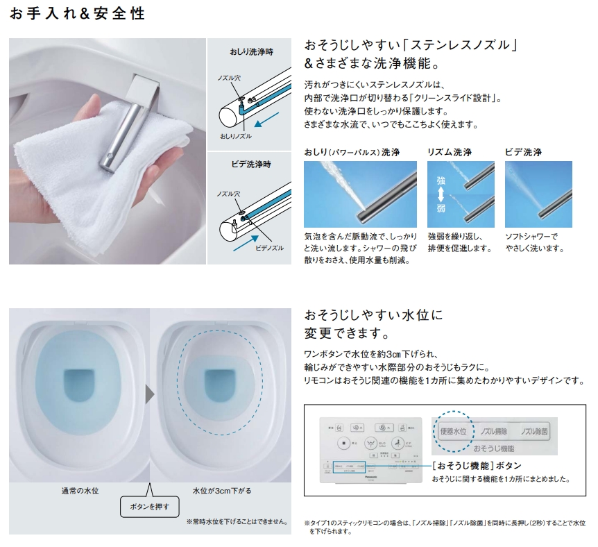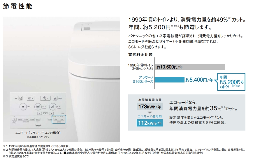 これまでお使いの便器も数種の機能を備えたタイプでしたが、今回はさらに多くの機能をお使いいただくよう、パナソニックのS160シリーズタイプ1をご提案いたしました。