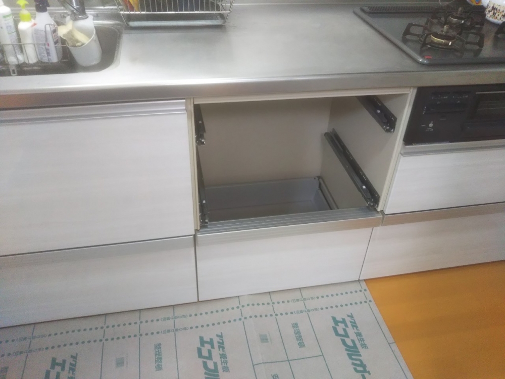 クリナップキッチン(ラクエラシリーズ)にパナソニックNP-60MS8Sを新規設置いたしました。