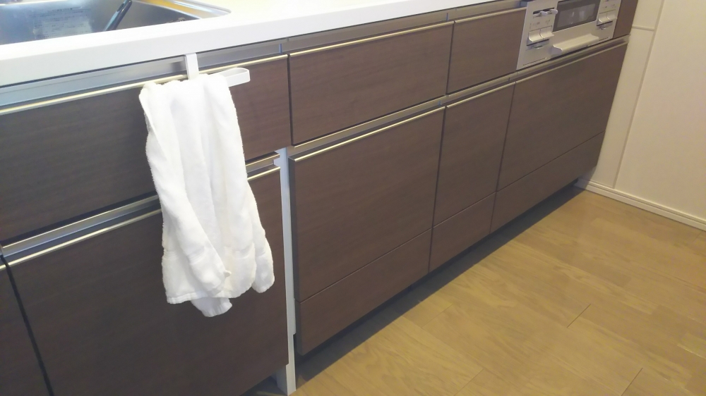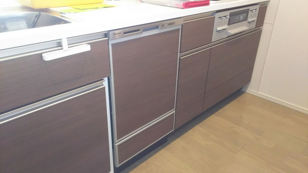 神奈川県相模原市にてビルトイン食洗器(NP-45MD8S)新規設置工事を行いました。パネルは同じ色のパネルを特注作成しました仕上げとなります。