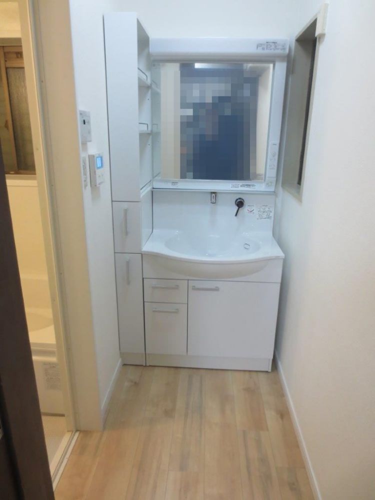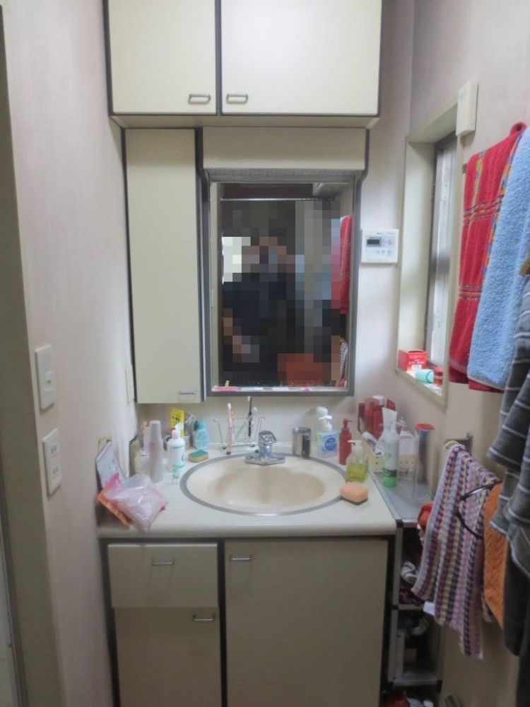 洗面台のリフォームでは、既存の窓を活かした配置で、しかも収納性・使い勝手の良いものを選ばれました。