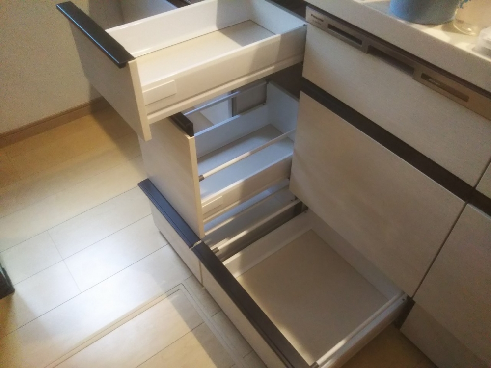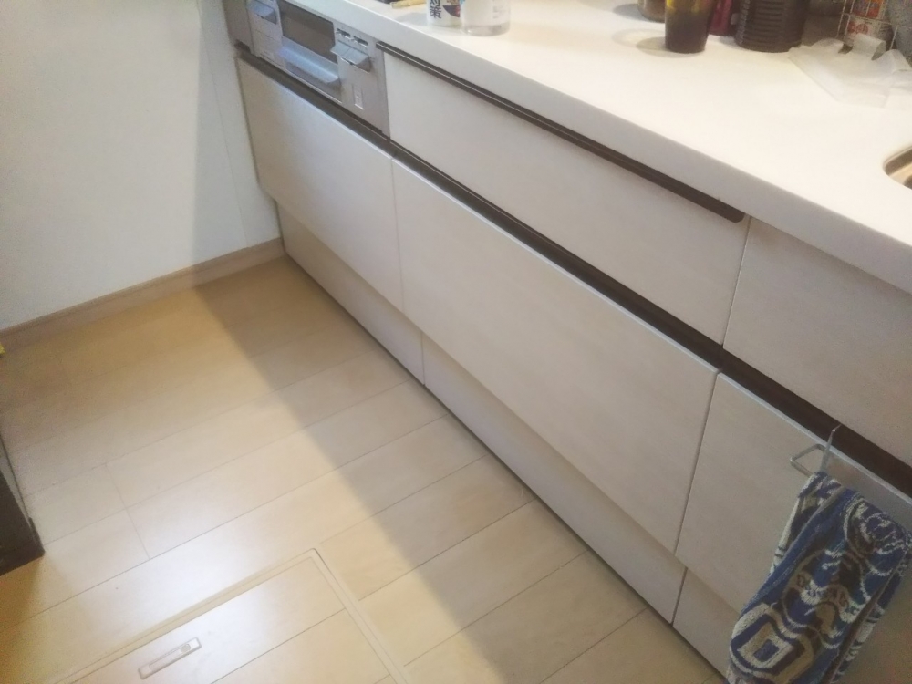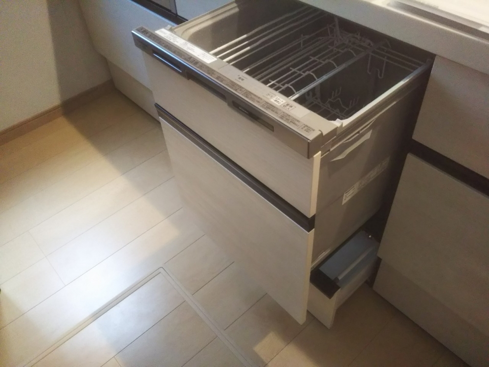 LIXILキッチンシエラシリーズ75cm幅キャビネットに45cm幅のビルトイン食洗機を設置いたしました。