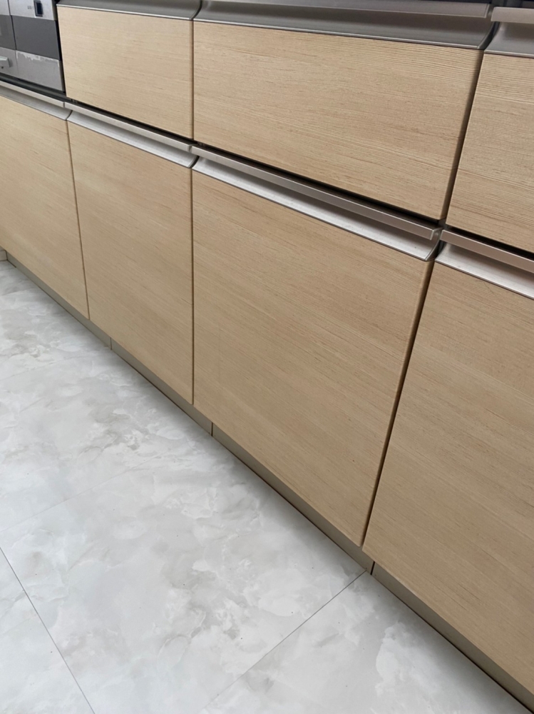 キッチンの扉と同色・同柄での色合わせをご希望くださっていたのですが、こちらのキッチン用のパネルはメーカー対応がありませんでした。