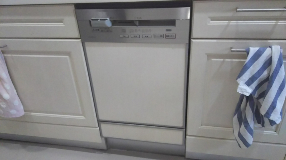 東京都世田谷区にて幅45cmリンナイフロントオープンタイプビルトイン食洗器設置シルバーカラー(RSW-F402C-SV)交換設置工事を行いました