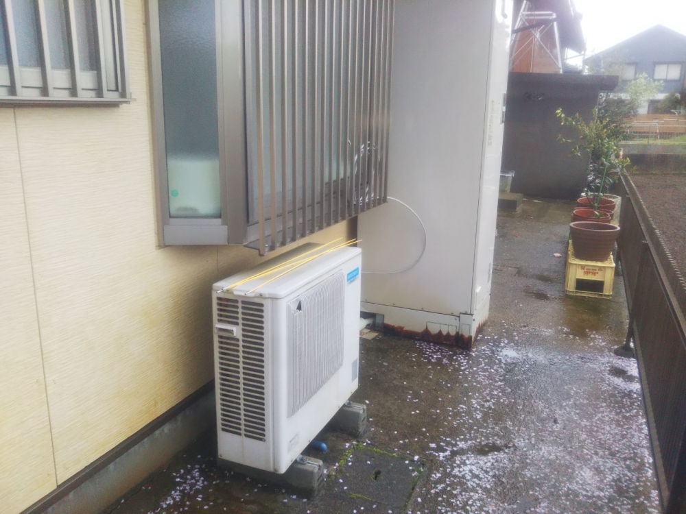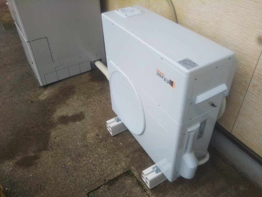 ホームページからお問い合わせを頂き、エコキュート並びに床暖房用ヒートポンプの交換工事をご依頼頂きました。