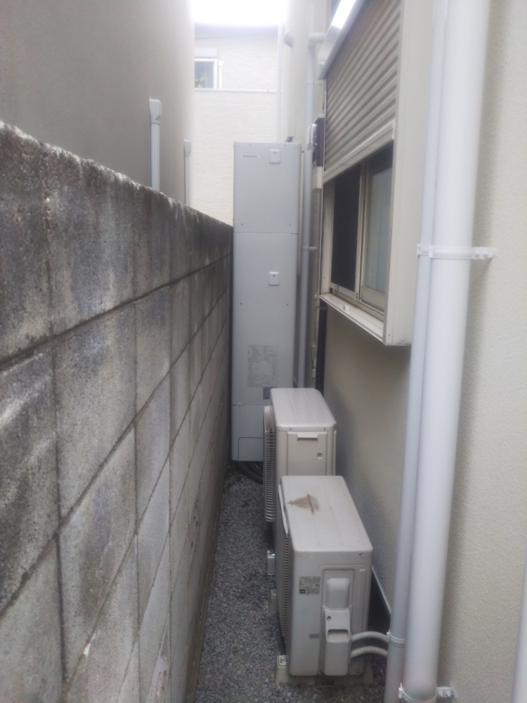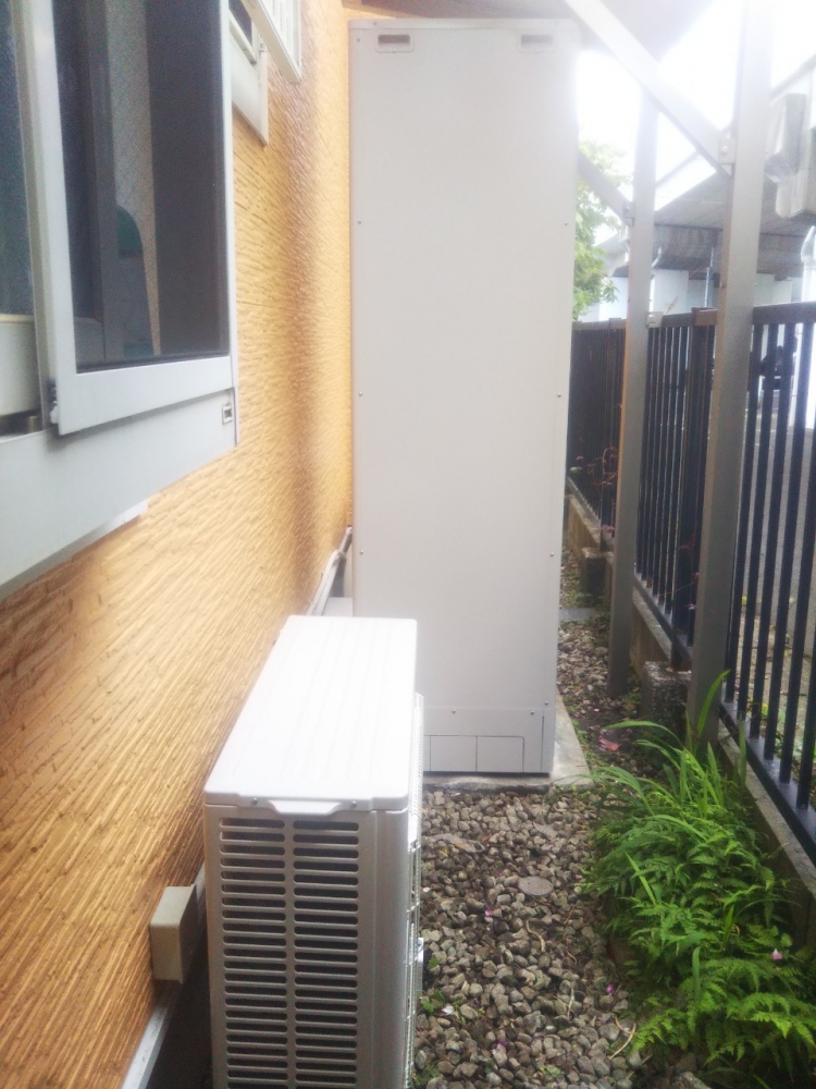 給湯をエコキュートで、一緒に床暖房用のヒートポンプをお使いのお客様から、最初はエコキュートの交換のご依頼を頂きました。