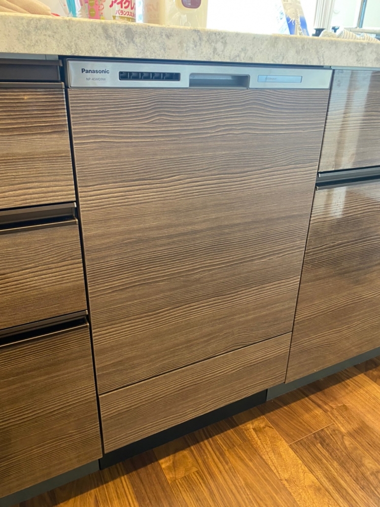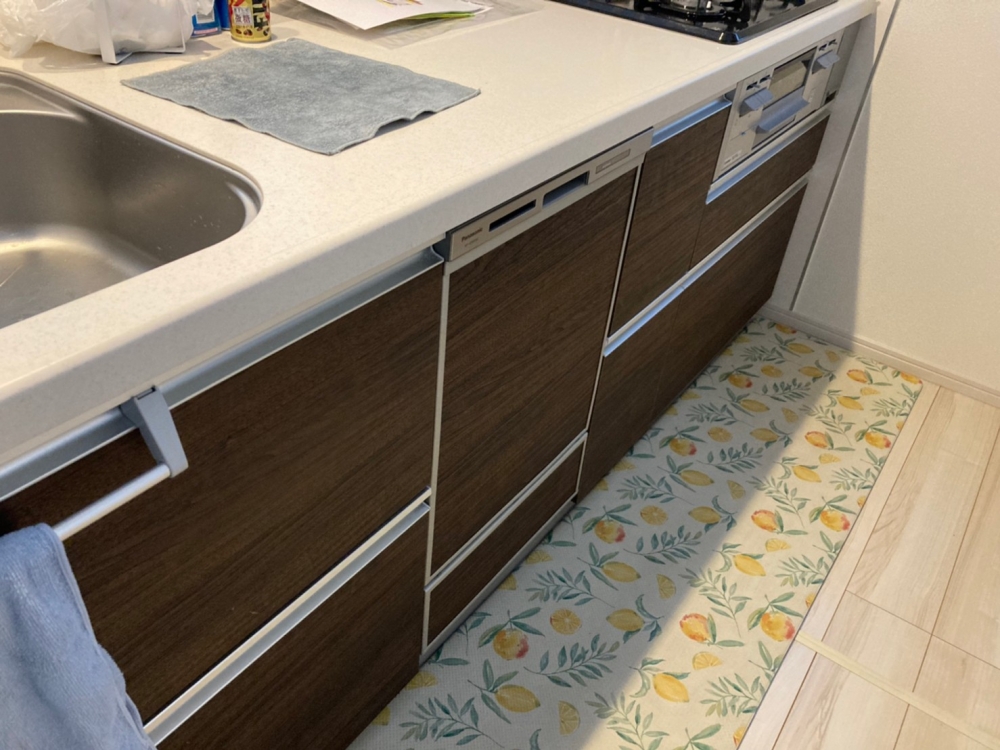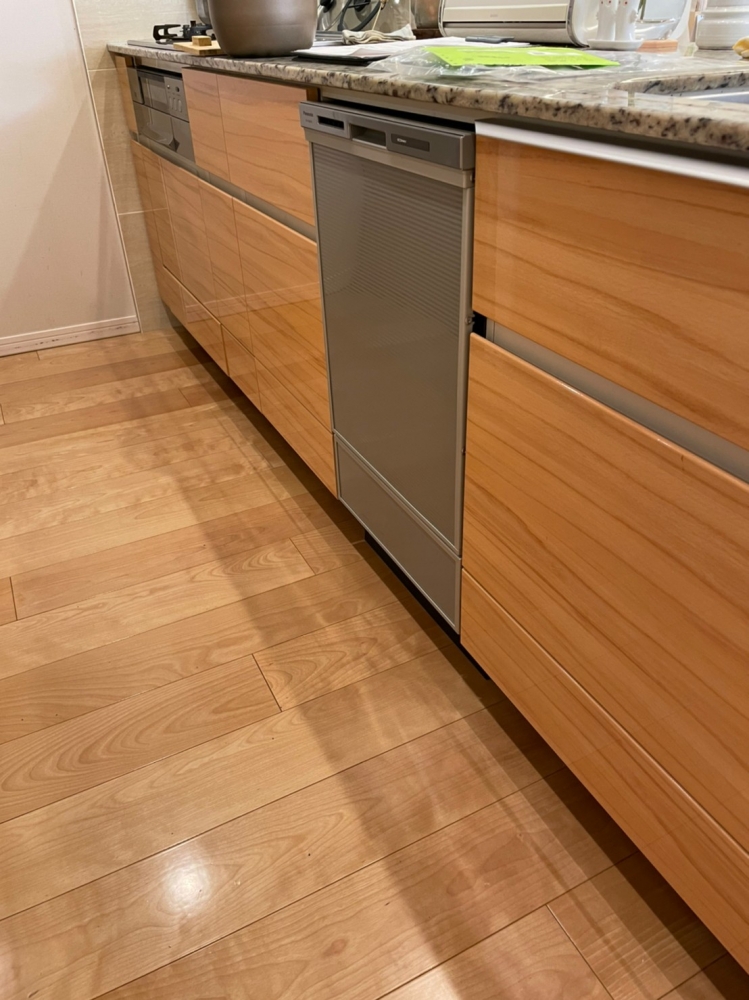東京都江戸川区S様ビルトイン食洗機新規設置工事|パナソニックNP-45MD9W|キッチン色合わせ(オーダー面材)