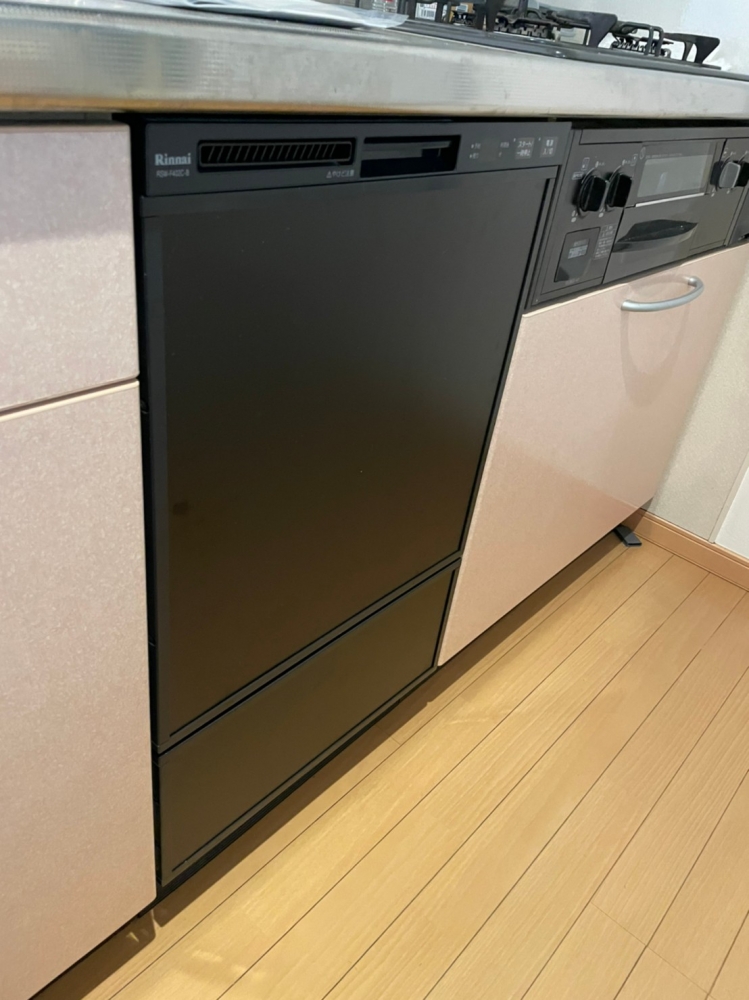 ご希望によりフロントオープンタイプの食洗機をご提案し、リンナイRSW-F402C-SVでの設置をいたしました。