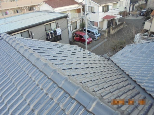 厚物瓦屋根工法、差込み方式にて施工